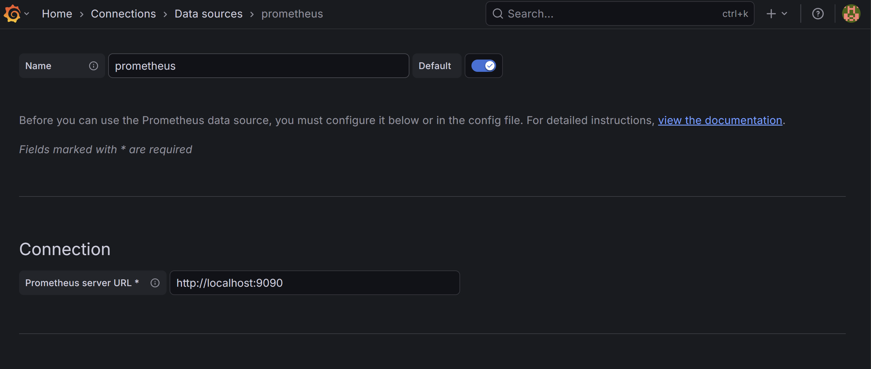 http://localhost:9090(or wherever your Prometheus server is running) and click “Save & Test”.