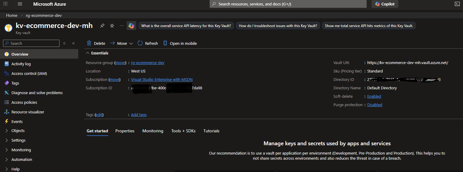 $scope = "/subscriptions/<your-subscription-id>/resourceGroups/rg-ecommerce-dev/providers/Microsoft.KeyVault/vaults/kv-ecommerce-dev-mh"